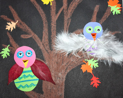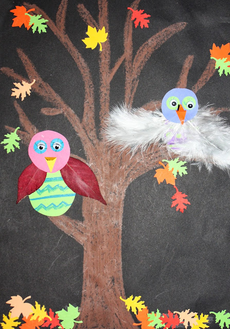 Die Eulen werden auf das schwarze Tonpapier geklebt und „auf den Baum“ gesetzt.