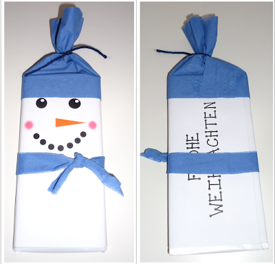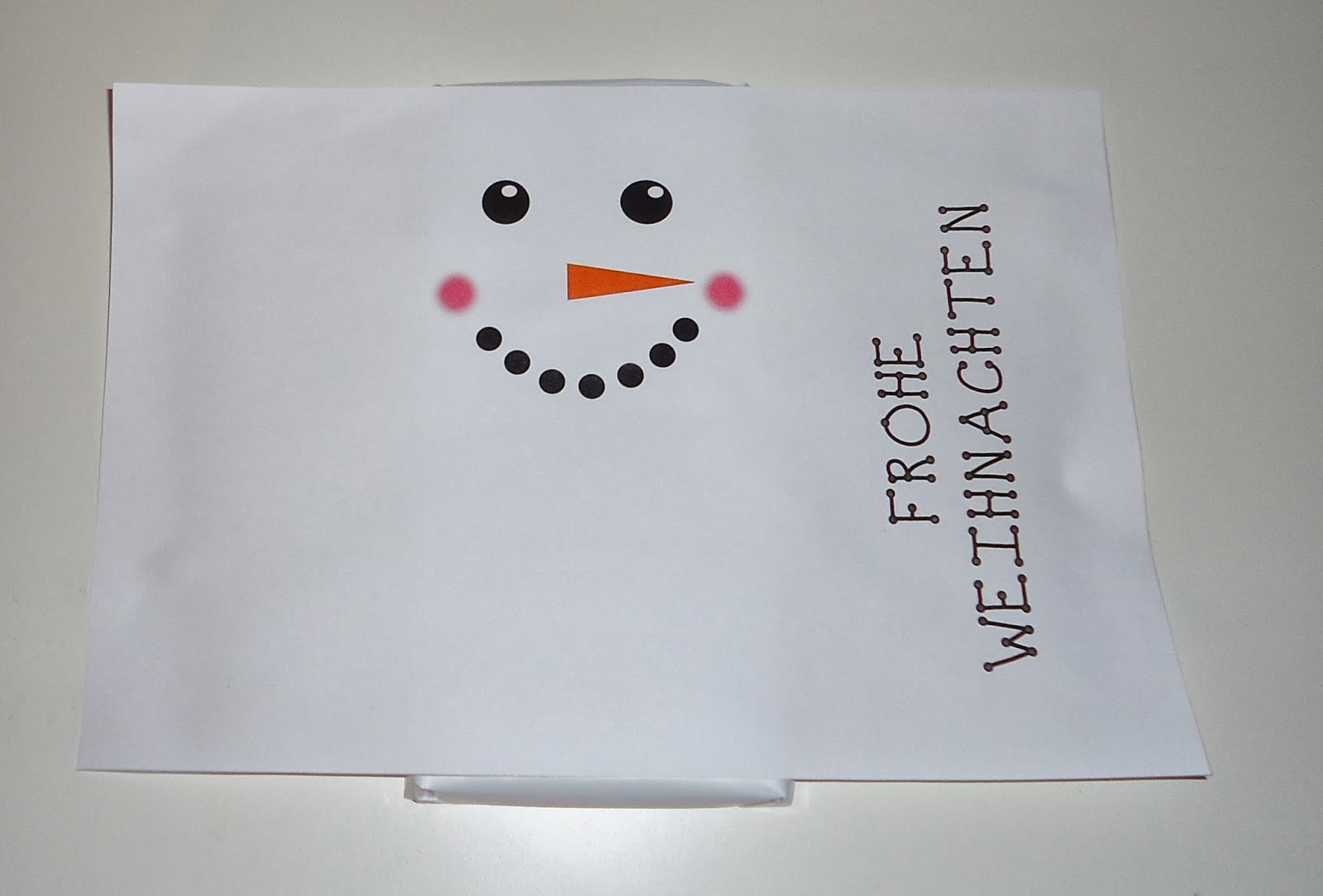 Heute, so verrückt es anfangs November auch klingen mag, *Weihnachtsgrüsse vom Schneemann*. Dieses Jahr bekommen meine Schülerinnen und Schüler von mir eine essbare Weihnachtskarte. Ob nun noch mehr Schokolade zu Weihnachten verteilt werden soll oder nicht, darüber lässt sich streiten. Die Vorlage könnt ihr hier in verschiedenen Versionen herunterladen.