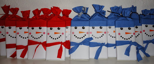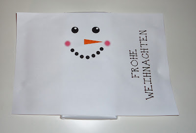 Zur Abwechslung habe ich noch rote Schneemänner gemacht. Statt „Frohe Weihnachten“ steht bei unseren Weihnachtsarten ein persönlicher Gruss.