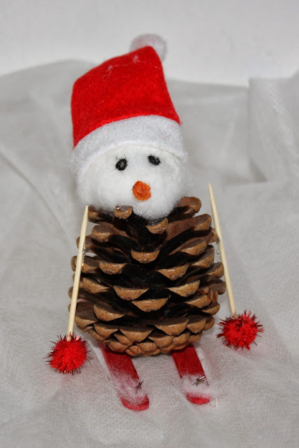 You are here: Home / Kreatives / Föhrenzapfen-Ski-Schneemann