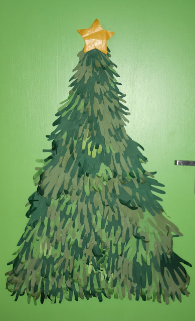 Wir klebten unseren wundervollen Baum anschliessend an unsere Klassenzimmertür. Er bereitete uns und anderen viel Freude und ich bin noch immer stolz auf unser Gemeinschaftswerk!