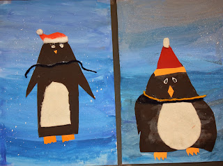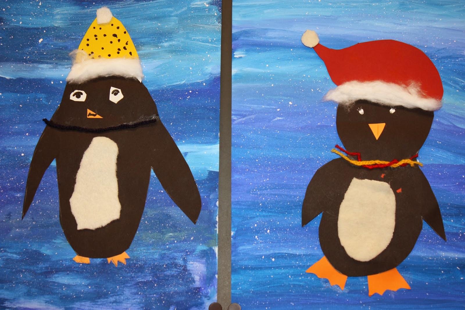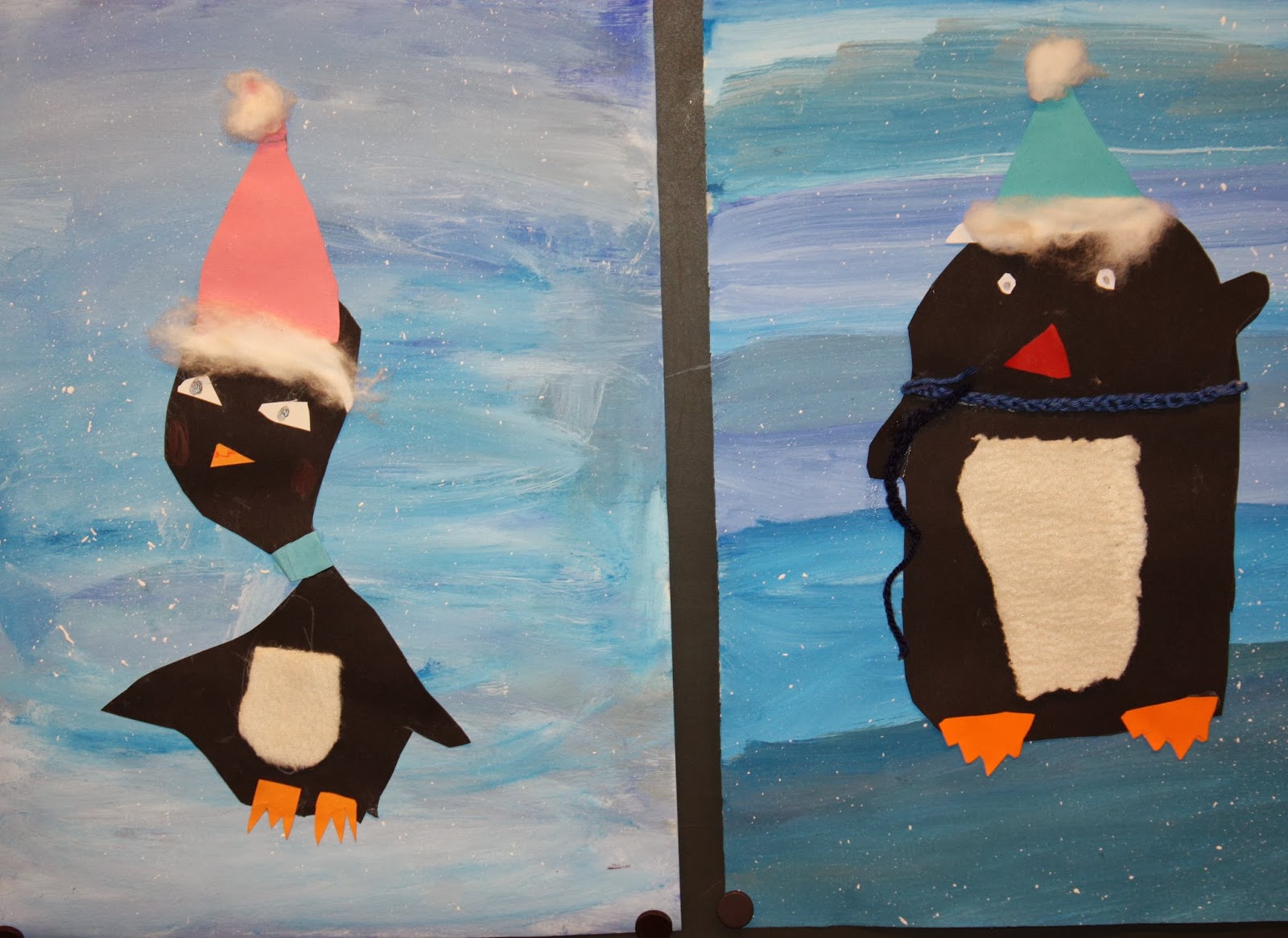 Während der Hintergrund trocknet, entstehen die Pinguine aus Tonpapier. Bei uns malte jedes Kind einen eigenen Pinguin. Sind sie nicht süss geworden? Und das Beste daran: jeder Pinguin ist einfach einmalig!