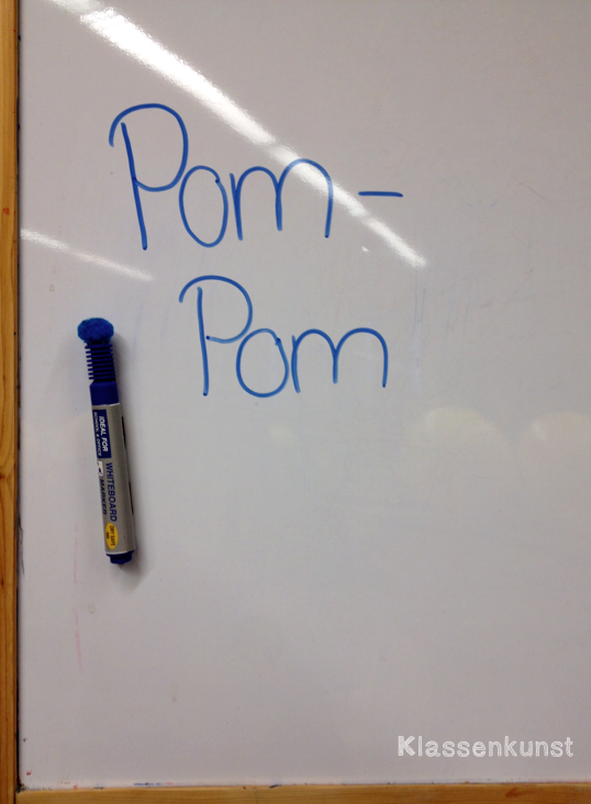 Und natürlich funktioniert der Pom-Pom-Stift auch auf Whiteboards: