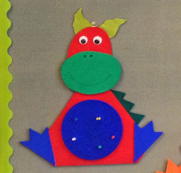 Auf dieser Seite: https://www.klassenkunst.com/2014/02/drachen-pinnwand.html siehst du die verschiedenen Teile, die du benötigst. Der Körper besteht aus einem Dreieck, der Kopf aus zwei gleich grossen Ovalen, die Füsse aus zwei Dreiecken. Der Körper muss gross genug sein, damit die Pinnwand Platz hat.