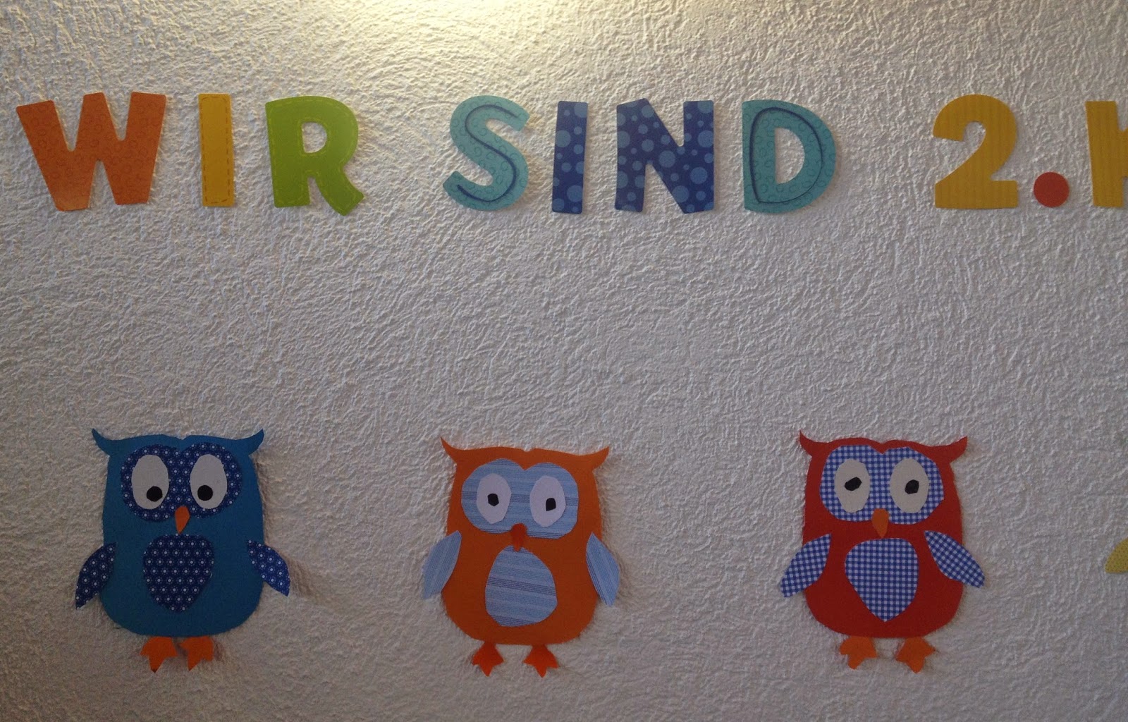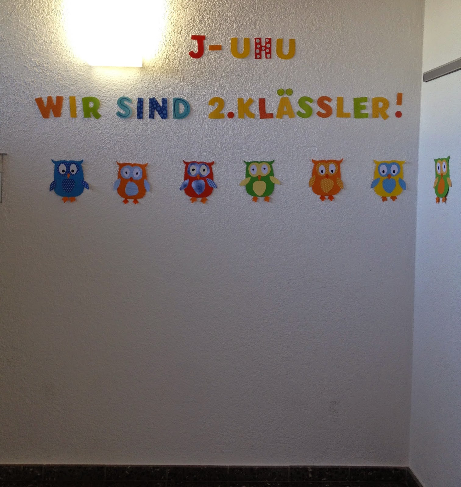 Auf einer Klassenzimmertür stand geschrieben: „Look, Whooo’s in 1st Grade“ und unter dem Spruch klebten viele bunte Eulen. Solche Wortspiele finde ich genial {hier ist mein erstes Wortspiel zu finden}. Aber auch in diesem Fall ist es so, dass ich den Englischen Spruch nicht verwenden kann. Logisch!