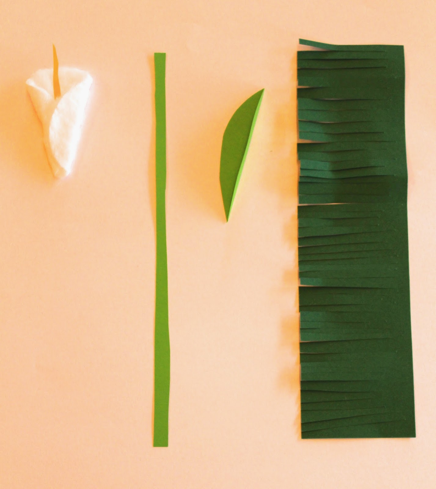Das Gras, die Stiele und Blätter werden aus Buntpapier zugeschnitten.