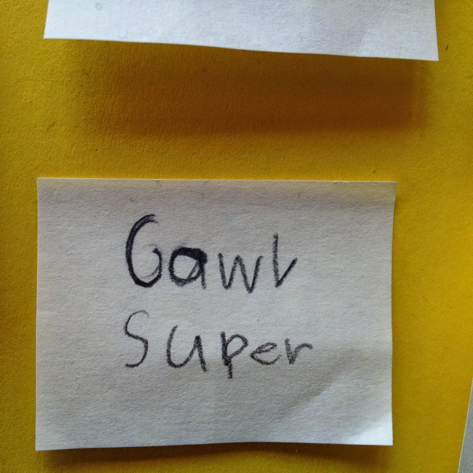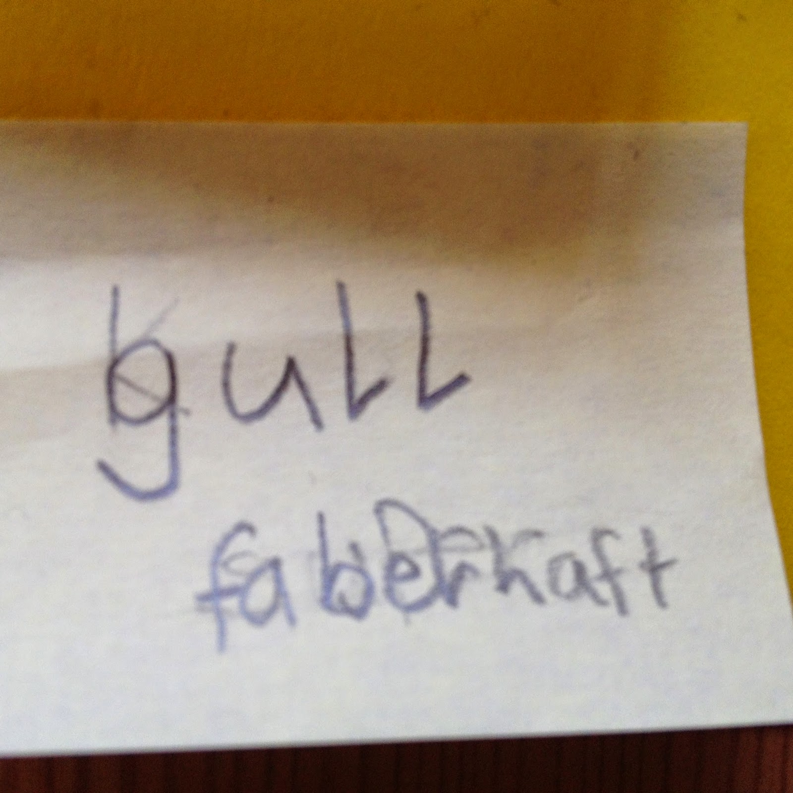 Als Hausaufgabe mussten die Kinder einen Gegenstand oder eine Person mit Adjektiven beschreiben die gefundenen Wörter und auf ein XXL-Post-It schreiben. Der ein oder andere war so begeistert von der Lehrerin voller Post-Its und verewigte dieses Bild (ich glaube, ich sah ziemlich bekloppt aus) in einer Zeichnung: