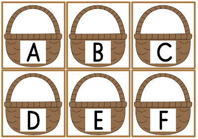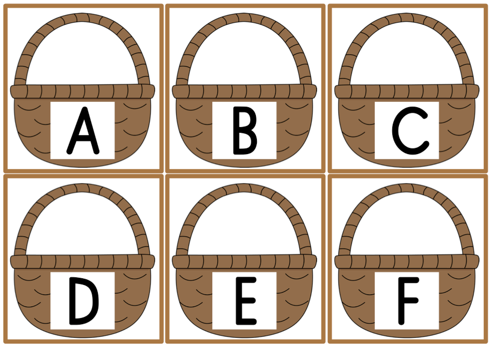 Auf dem Osterkörbchen steht jeweils der Grossbuchstabe, auf dem Osterei der Kleinbuchstabe.