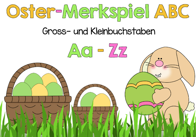 Ein paar meiner Förderkinder haben mit der Zuordnung von Klein- zu Grossbuchstaben hin und wieder noch Schwierigkeiten. Daher habe ich {passend zu Ostern} ein Merkspiel erstellt. Meine Klasse liebt Merkspiele und daher werden sicherlich nicht nur meine Förderkinder, sondern auch der Rest der Klasse Freude daran haben.