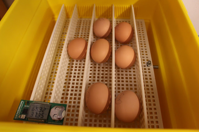 Das kleine Ding unten links legten wir zusätzlich hinein. Wir waren uns nicht sicher wie genau der Brutkasten arbeiten würde. So konnten wir die Luftfeuchtigkeit und die Temperatur ständig überprüfen und allenfalls anpassen.