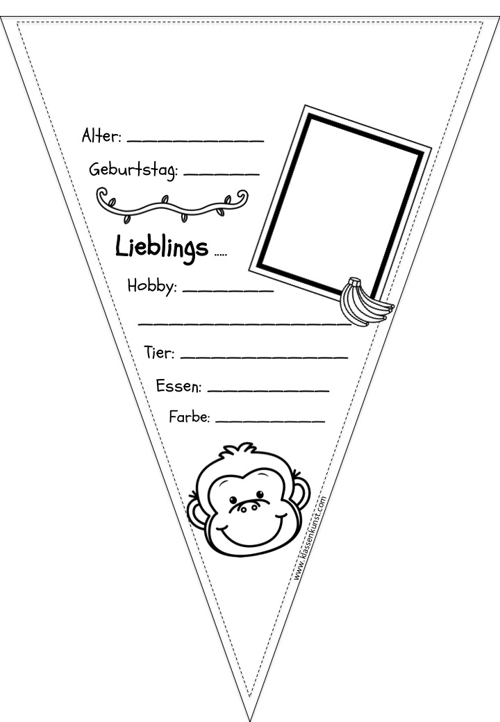 Im neuen Schuljahr werden meine „Äffchen“ und ich zwei neue Schüler in unserer Runde begrüssen. Für diesen Anlass habe ich die „Das bin Ich Wimpel“ an unser Affenthema angepasst und mit Louis, unserem geliebten Maskottchen ergänzt.