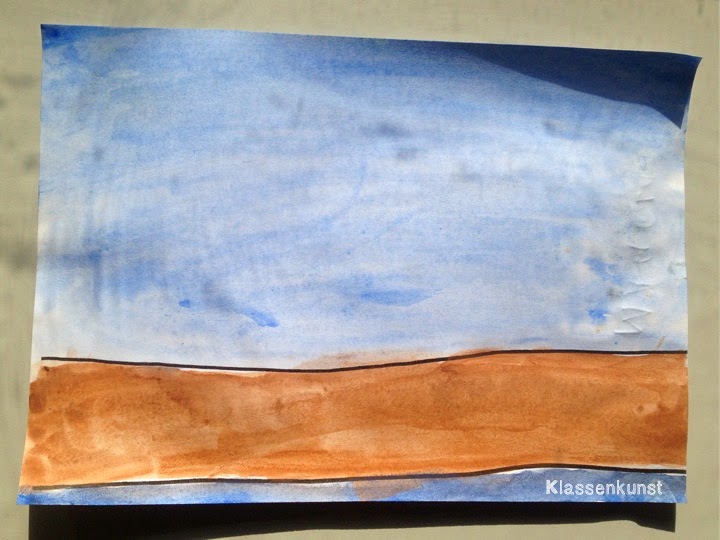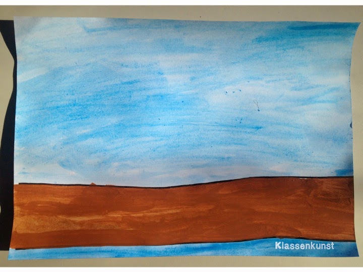 Den Himmel und den Ast auf ein weisses Blatt Papier malen: